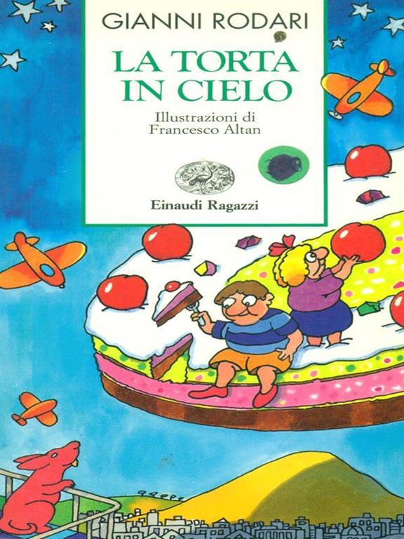 In La torta in cielo Rodari affronta il tema degli armamenti e della Pace. La bomba atomica è trasformata per errore in torta, dallo stesso scienziato che la progetta. I bambini scoprono le leccornie nascoste nella “bomba” e le condividono con la comunità, perché “ce ne sarà per tutti quando gli uomini al posto delle bombe faranno torte”.